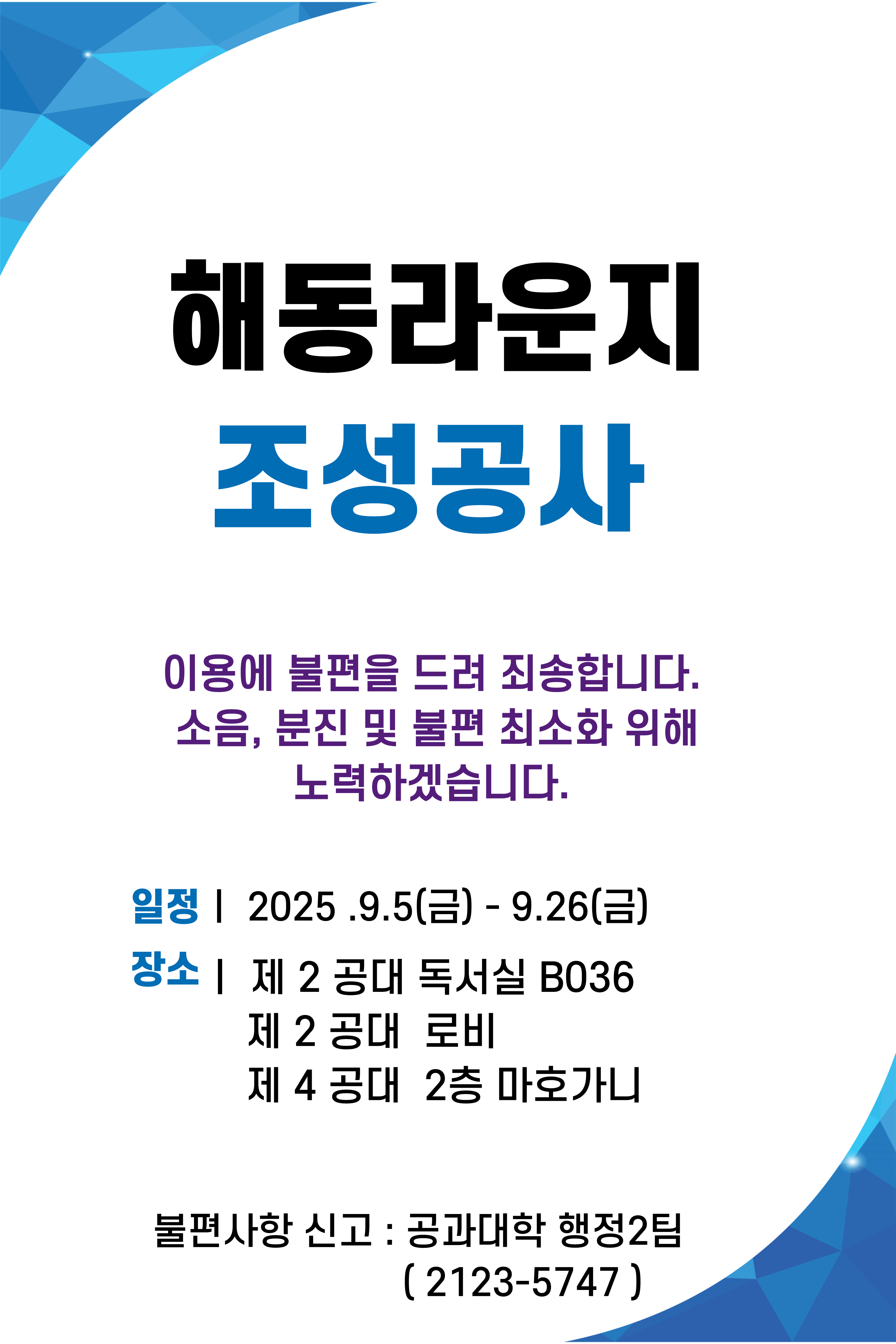 해동라운지 조성공사 안내(2025.9.5.~9.26.)