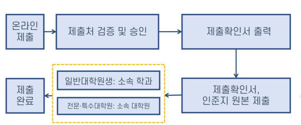 (학생) 온라인제출 승인 후 '제출확인서' 출력하여 소속학과에 제출(필수)