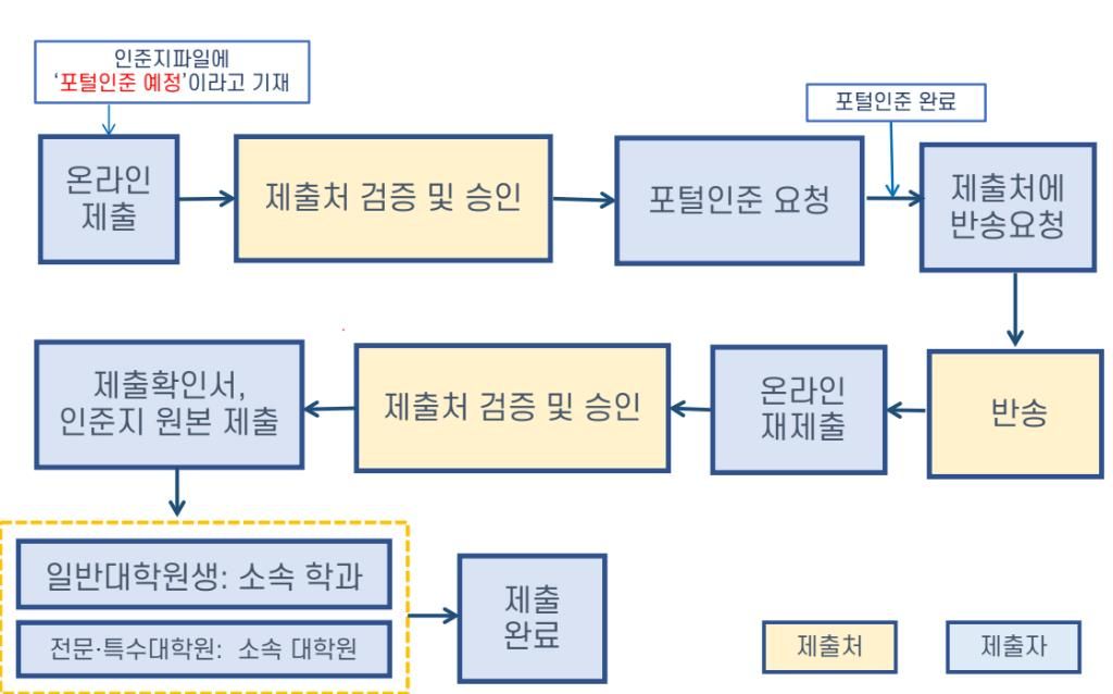 2) 온라인 재제출: 학사포털 인준인 경우 도서관에 반송 요청한 후 온라인 재제출